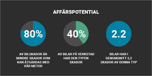 Våra verkstäder får goda förtjänster samtidigt som kunderna sparar pengar. Vårt mål är att bli bäst på kosmetiska reparationer.